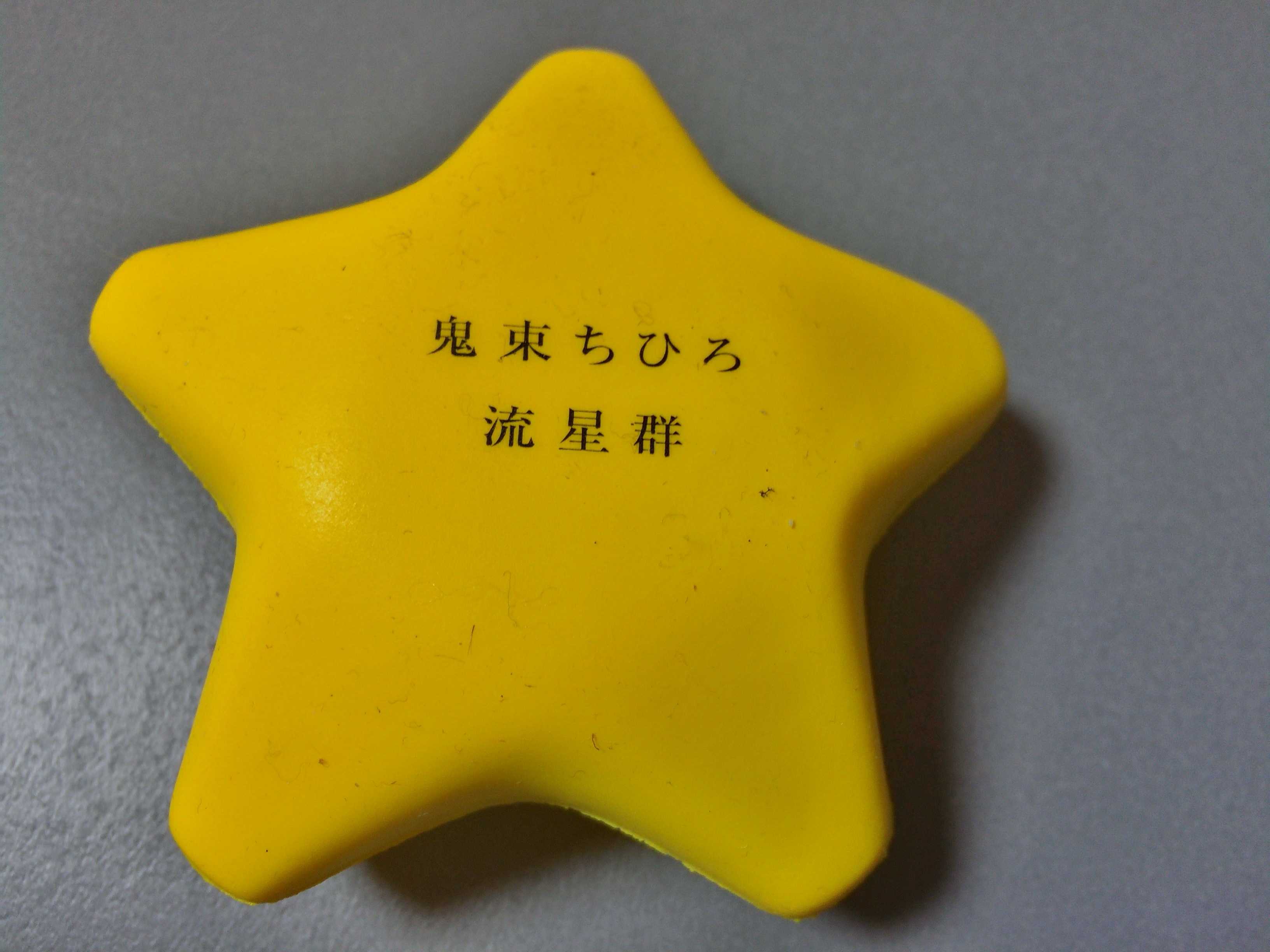 そういえばと思って探してみたらありました。鬼束ちひろの「流星群」の時のノベルティ。ぷにぷにして負荷をかける手のトレーニングするやつ。宣伝用なので一般には手に入れられないものですが、まぁ昔のものだし出してもいいでしょ(笑、というか物持ちよいですね。これをなるべくにぎにぎしてみます。まさか16年の時を経て役に立つ日が来るなんて全くおもいませんでしたけどねw